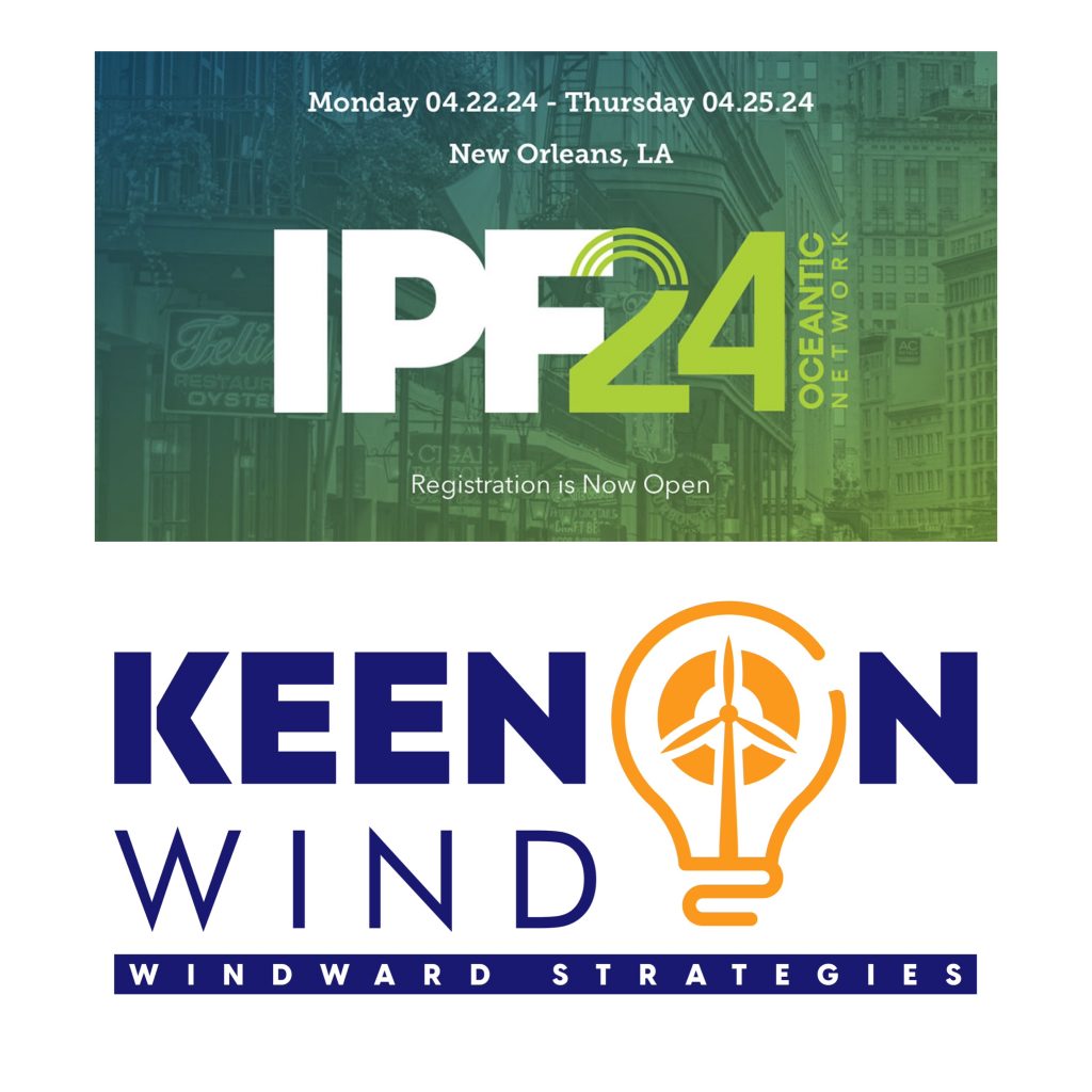 from April 22-25 KEEN ON WIND will attend the IPF, INTERNATIONAL PARTNERING FORUM for offshore wind, THE conference for the US offshore wind sector. Come and visit us at the “MADE IN GERMANY” national German booth.  Is your company  interested to break into the US offshore wind market? we have pioneering experience in the US offshore wind market and a good network over there.  Forgot to book IPF or have no time/capacity to attend? We yet have a little slot free to represent your company at IPF this year!